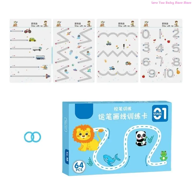 Help toddler learn proper writing control and writing habits with 64 pages reusable preschool handwriting workbook features progressive pencil control training exercise.