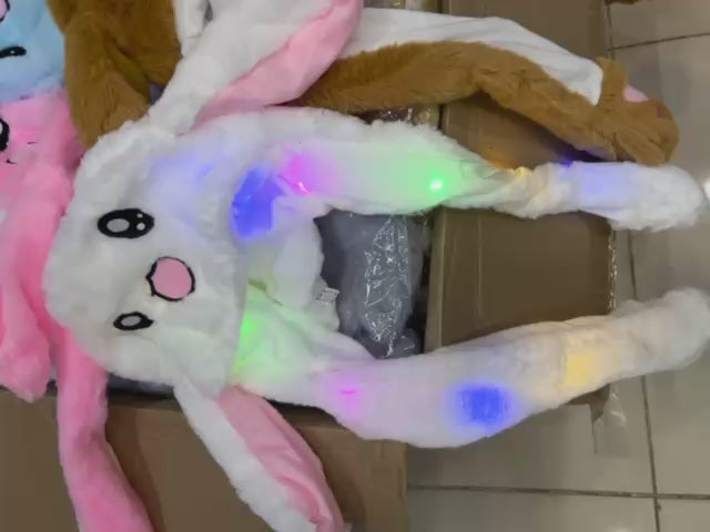 Jumping Rabbit Hat Plush Ear Funny Glowing Ear Moving Bunny Hat Cosplay Halloween Christmas Party Hat 5-18 Years and Adult