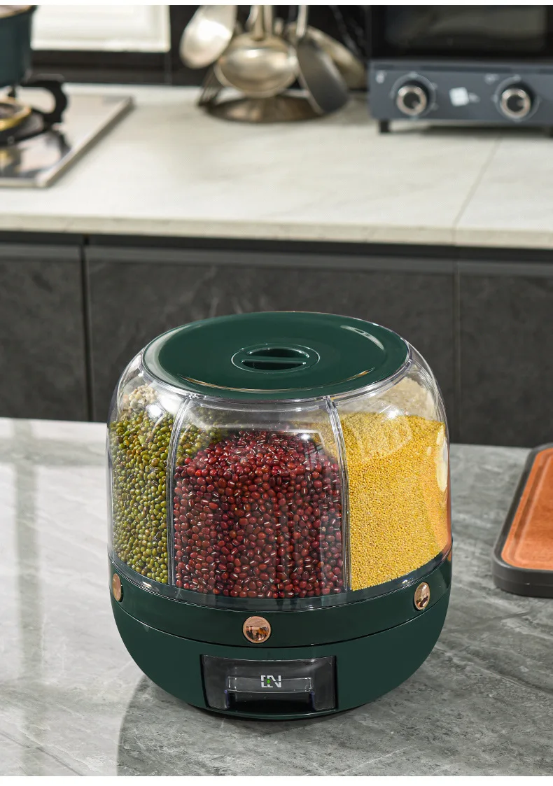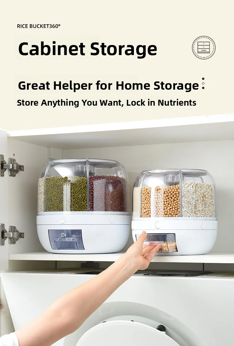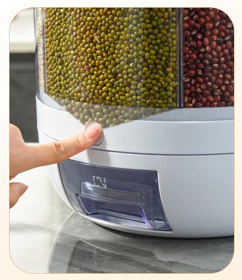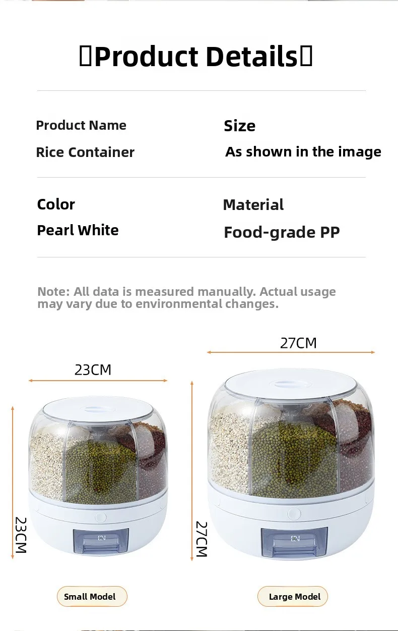Rotating Multi-Grain Rice Storage Box – Airtight, Moisture-Proof, Bug-Resistant Plastic Container for Kitchen & Home Use, Modern Minimal Design