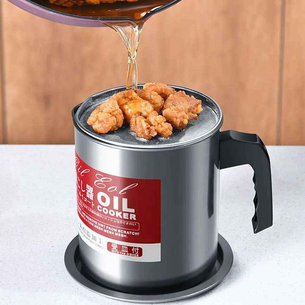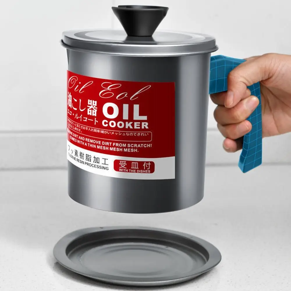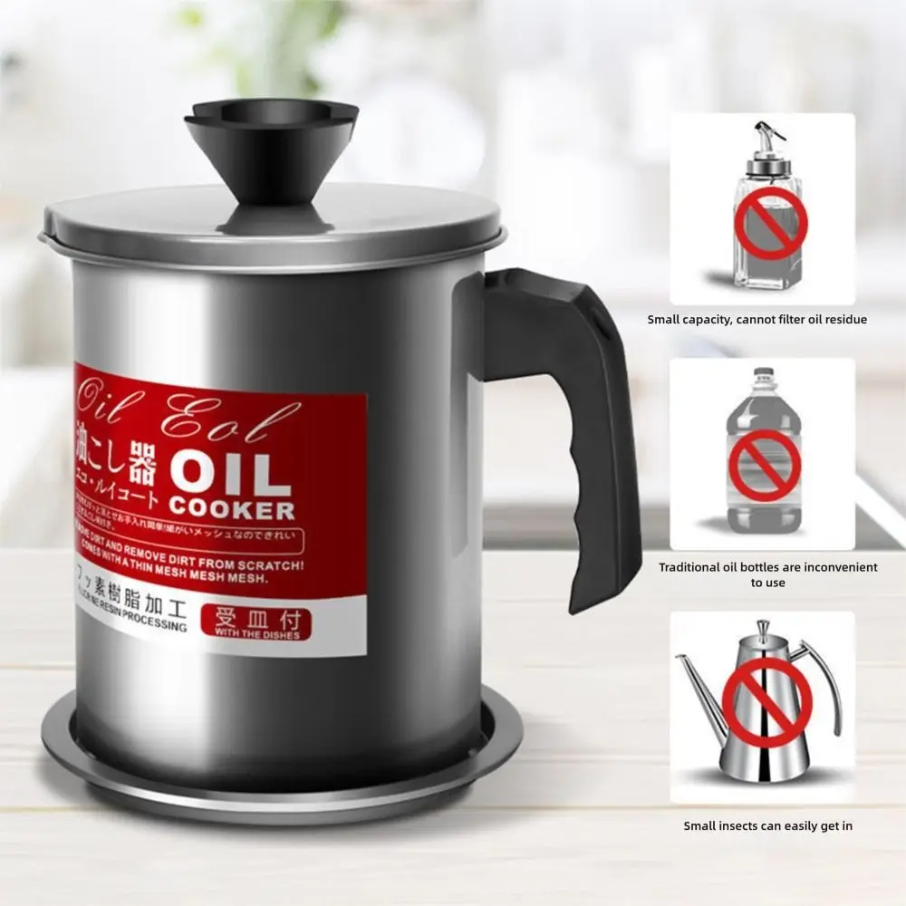 Stainless Steel Cooking Oil Jar with Tray&lid Food Oil Strainer Container Large Capacity Silver Grease Keeper Pot