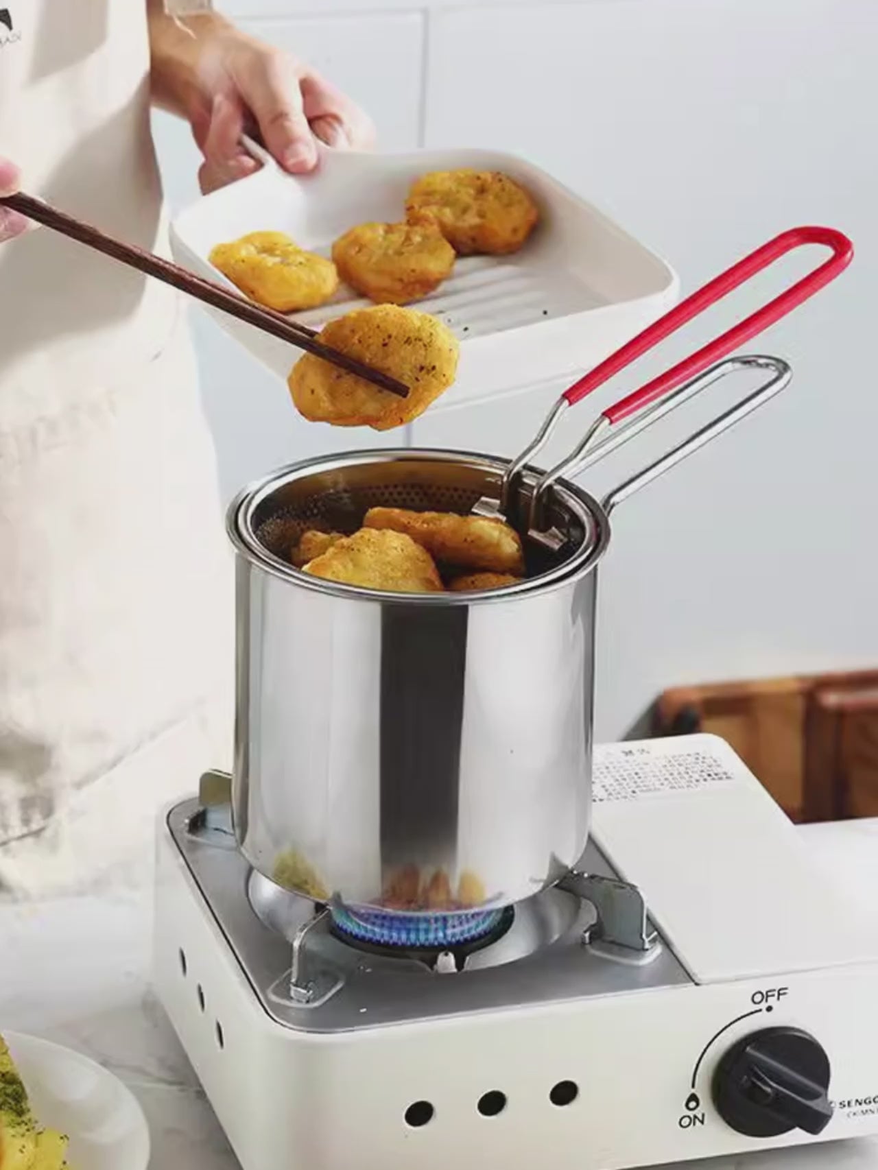 Large Stainless Steel Deep Frying Pot with Handle & Oil Filter Screen – Heavy-Duty Household Fryer for French Fries, Chicken Wings, Snacks & Deep Frying, Durable Rust-Free Cooking Oil Pot